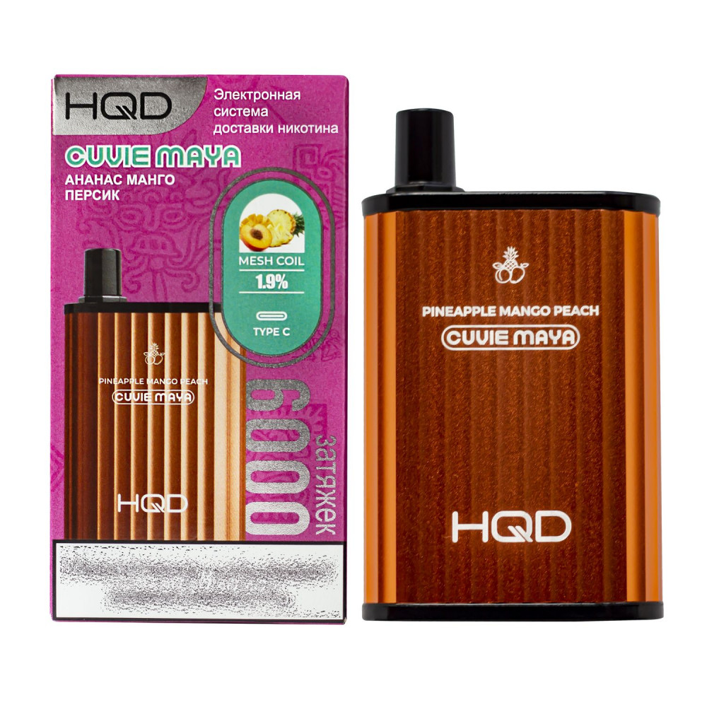 HQD Cuvie MAYA Pineapple Mango Peach (hqd Куви Мая Ананас Манго Персик) - это инновационная электронная сигарета, предлагающая удобство и удовольствие от курения без вредных веществ и запаха. Стильный и компактный дизайн продукта делает его идеальным выбором для тех, кто хочет насладиться аутентичным курением без негативных последствий. Благодаря ассортименту вкусов и мощной батарее, HQD обеспечивает насыщенный и длительный вкусовой опыт.